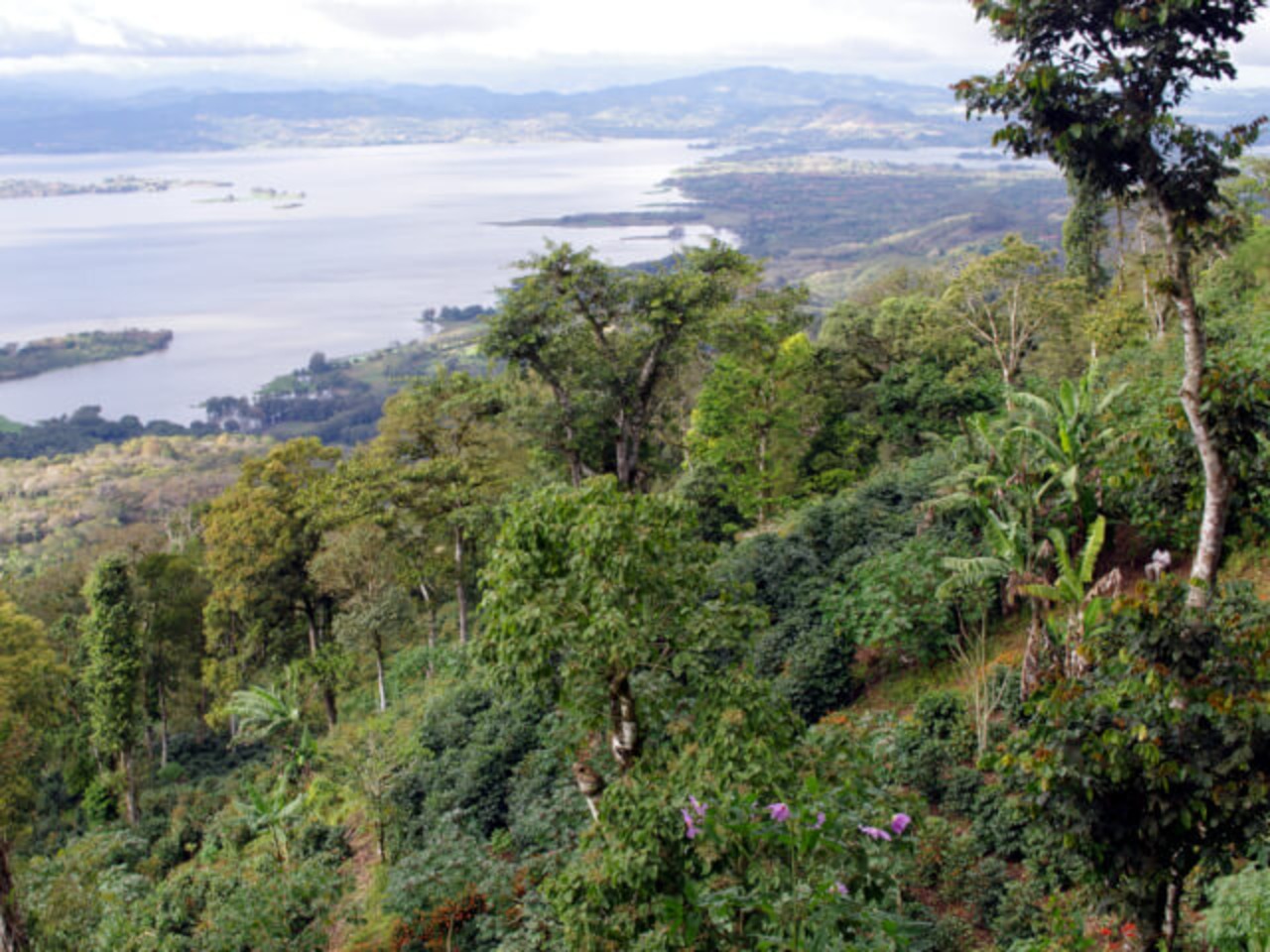 ラス・デリシャス農園は、ヒノテガの標高1260mから最高1450mのアパナス湖を展望する断崖の上にあり、風通しよく湖面からの反射を含めた日照と雨量にも恵まれた環境にあります。